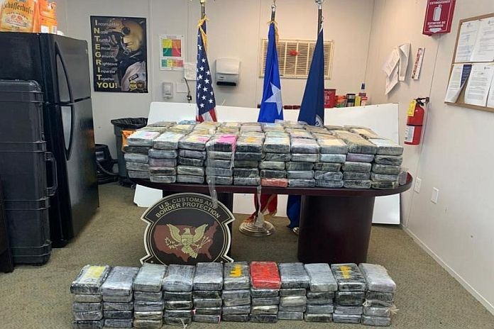 AGUADILLA, Puerto Rico – US Customs and Border Protection (CBP) Air and Marine Operations (AMO) agents intercepted a center console vessel near Cabo Rojo, finding 695 pounds (315.4 Kilos) of cocaine inside its hull and one firearm.