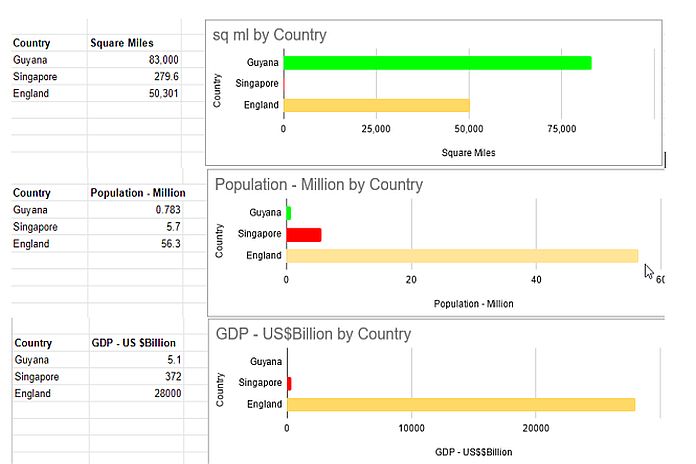 Consider the charts below. Singapore almost disappears in the size category. Guyana actually does in GDP (income) category too small for scale.