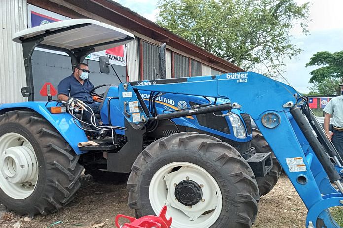 BELMOPAN, Belize – The ministry of agriculture, food security and enterprise received a tractor with forage harvester, a used Mitsubishi four-wheel-drive pickup, and other farm implements from the Embassy of the Republic of China (Taiwan) in Belize.