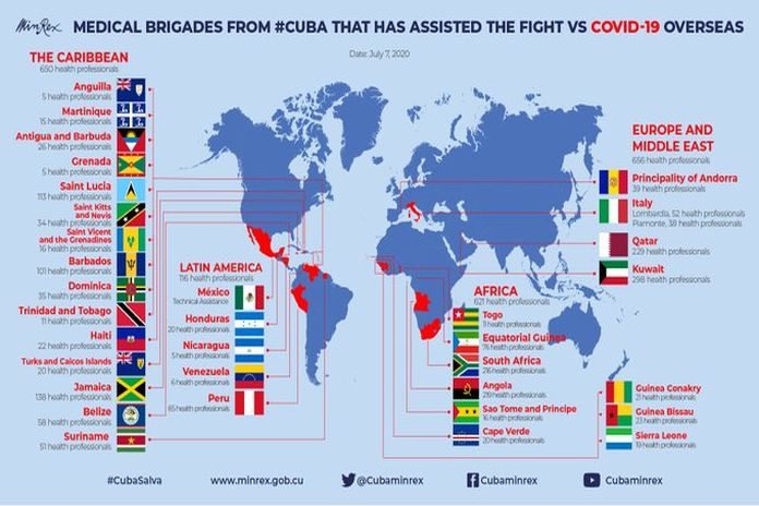 Thousands of Cuban health professionals belonging to the Henry Reeve medical brigade are working in more than 20 countries around the world to contain the spread of the disease caused by the new coronavirus.