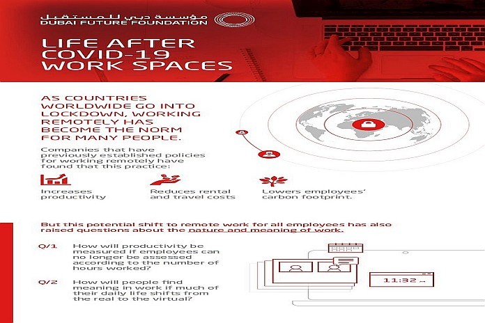 DUBAI, United Arab Emirates, (WAM) – The Dubai Future Foundation launched the first issue from a series of reports to tackle the different challenges that organisations in Dubai and the world will face once the COVID-19 global outbreak subsides, titled “Life After COVID-19: Workspaces”.