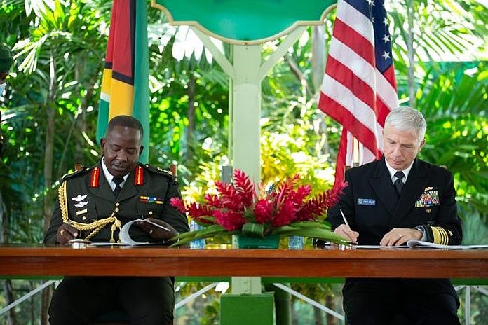 GEORGETOWN, Guyana, (DPI) – The Guyana Defence Force (GDF) signed an Acquisition and Cross-Service Agreement with the United States Department of Defense. The Agreement will facilitate reciprocal logistical support between the two countries that caters for combined exercises, deployment, training and other cooperation efforts.