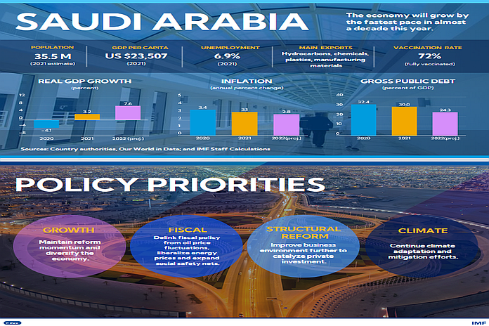 Saudi Arabia is likely to be one of the world’s fastest-growing economies this year as sweeping pro-business reforms and a sharp rise in oil prices and production power recovery from a pandemic-induced recession in 2020. Gross domestic product is expected to expand by 7.6 percent, the fastest growth in almost a decade, according to our recent Article IV consultation report.