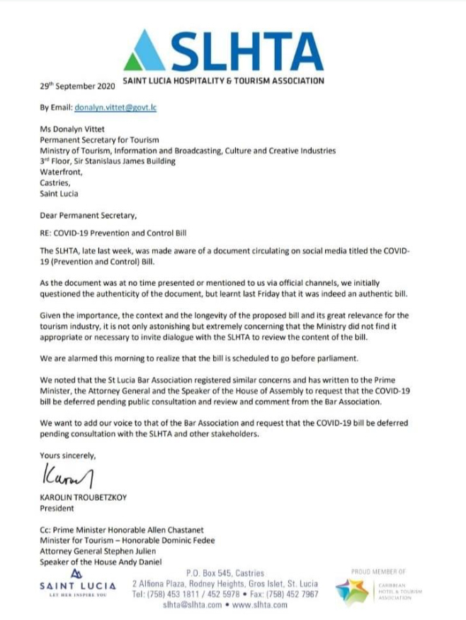 HomeOpinionLettersSt Lucia tourism association request COVID-19 bill deferred OpinionLetters St Lucia tourism association request COVID-19 bill deferred September 30, 2020 0 234 Share FacebookTwitterPinterestWhatsApp Related Links: St Lucia Bar Association intervenes on COVID-19 Bill St Lucia parliament convenes under duress The spineless civil society Share FacebookTwitterPinterestWhatsApp Previous articleHHS Secretary Praises Department of Motor Vehicles for Their ‘Pivotal Role’ in Another Record-Setting Year in Organ DonationNext articleWhen is Enough, Enough? RELATED ARTICLES Commentary The Canadian economy in 2026: A year of uncertainty, slow growth and transition December 17, 2025 Latest Articles US winning the AI race against weak Chinese chip sector December 16, 2025 Commentary President Trump’s ‘Mission Accomplished’ moment December 16, 2025 LEAVE A REPLY Cancel reply Comment: Please enter your comment! Name:* Please enter your name here Email:* You have entered an incorrect email address! Please enter your email address here Website: Save my name, email, and website in this browser for the next time I comment. Δ Caribbean News BVI calls for new era of cooperation between Latin America – The Caribbean December 17, 2025 0 TORTOLA, BVI - The British Virgin Islands (BVI) has called for a new era of cooperation between Latin America and the Caribbean to help... Government of Dominica seeks clarification and dialogue with United States on Presidential Proclamation December 17, 2025 0 The Coca-Cola Foundation awards USD 1 Million to strengthen plastic recycling in the Caribbean December 17, 2025 0 Prime Minister of Antigua – Barbuda Gaston Browne on US visa restrictions December 17, 2025 0 Load more Global News WHO hosts the second Global Summit to advance evidence, integration and innovation for traditional medicine December 17, 2025 0 GENEVA, Switzerland - The World Health Organization (WHO)’s Second Global Summit on Traditional Medicine, jointly organised with the government of India, opens today, bringing together... EU to phase out imports of Russian gas December 17, 2025 0 Tokyo economic security forum December 17, 2025 0 Second National Symposium on Social Protection showcases digital transformations in Lao PDR December 17, 2025 0 Load more
