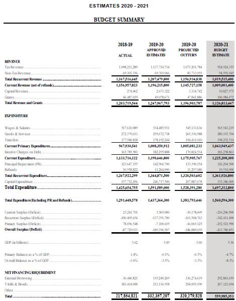 According to the forward of the 2020/21 budget summary, “ this document complies with reforms undertaken by the Accountant General’s Department in 2019-20 which resulted in a change, not only in the nomenclature of programmes (in order to better reflect the services delivered by governmental units) but also the reclassification of expenditure in accordance with GFS and IPSAS requirements.
