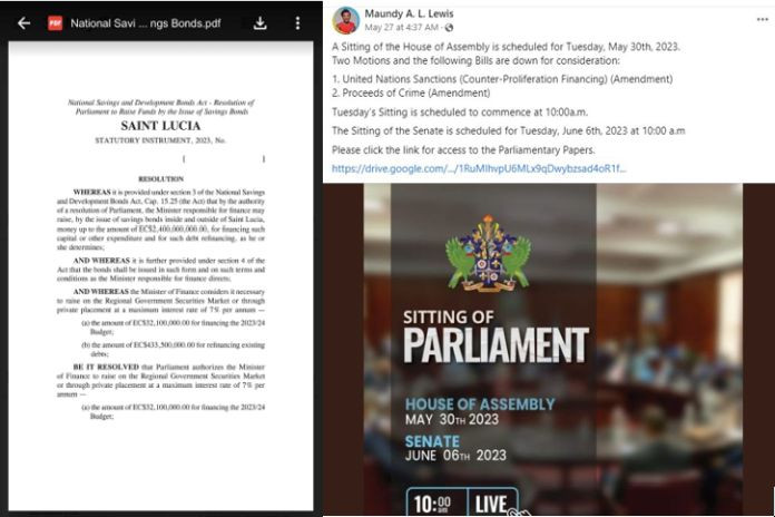 CASTRIES, St Lucia – Parliament on Tuesday, May 30, 2023, will borrow “XCD$2.4M via the National Savings and Development Bonds Act, with crime and zero-sum politics St Lucia’s alternative reality, features the infamous judge and jury – St Lucia’s Bazooka Speaker – Mea culpa “through my fault.”