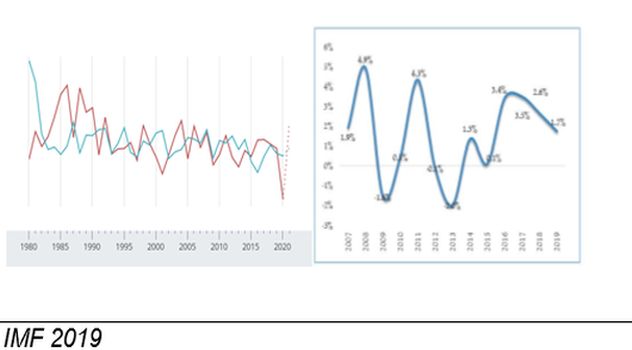 The historical trend has been as described above, also the IMF captures a trend ever since Saint Lucia was recognized by the IMF in 1979. Further, I wish to examine their summary alongside the Economic and Social Review 2019, which captures the GDP growth for the period 2007-2019 which the last rate of growth registered at 1.7 percent, (2019).