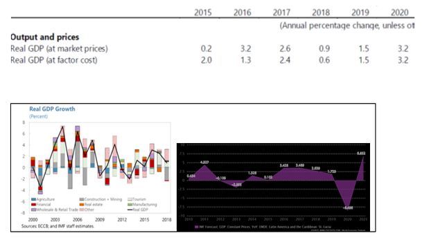 The above depicts the trajectory of the Saint Lucian economy for the period ending 2018-2020 (before the COVID-19 pandemic). Significantly, as you examine the data on Saint Lucia (ECCB, IMF chart) you will note the productive sectors that performed positively were notably tourism ( expenditure in the sector was estimated to have increased by 11.2 percent) distribution, trades and manufacturing (8.6 percent) respectively. However, the construction sector (0.3) and agriculture ( 0.8 percent) experienced contractions and were not so important in the IMF analysis you saw earlier.