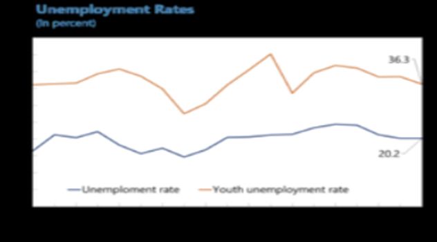 The trajectory of unemployment can be captured similarly in the Table below. The average rate of unemployment rate fell to 16.8 percent in 2019, down from 20.2 percent in 2018. Youth unemployment also decreased from an average rate of 36.3 percent in 2018 to 31.6 percent in 2019.