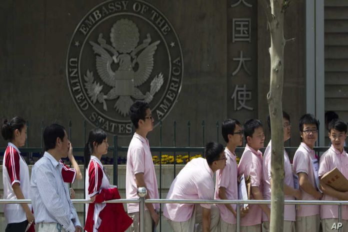 WASHINGTON, USA – The US says it has revoked the visas of more than 1,000 Chinese citizens considered “high risk” to US security because of alleged ties with the Chinese military. The Donald Trump administration has charged that Chinese students have come to the United States to steal intellectual property to advance China’s economic and military sectors.