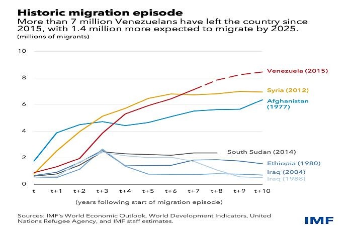 After a brief interruption during the pandemic, when many countries closed their borders, migration from Venezuela has resumed and is expected to continue in the coming years, although at a slower pace.